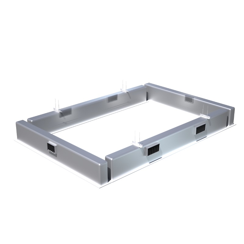The Hospital Operating Room Diffuser (HORD) air curtain system is engineered for the demanding needs of operating rooms. The HORD air curtain system is fully customizable and integrates seamlessly with laminar flow diffusers and low-level exhaust grilles to minimize mixing of room and supply air in the operating area. This customizable air curtain system can be fabricated with aluminum or stainless steel, with mechanically fastened or continuously welded end caps to suit project requirements.